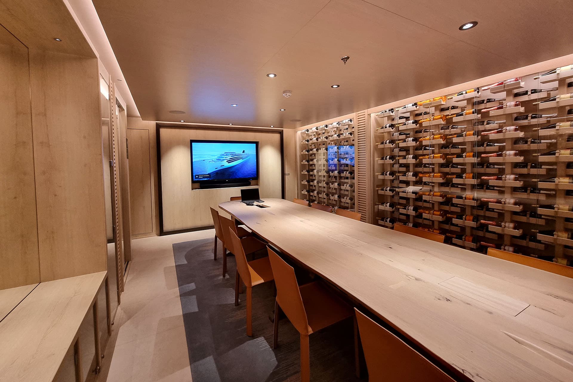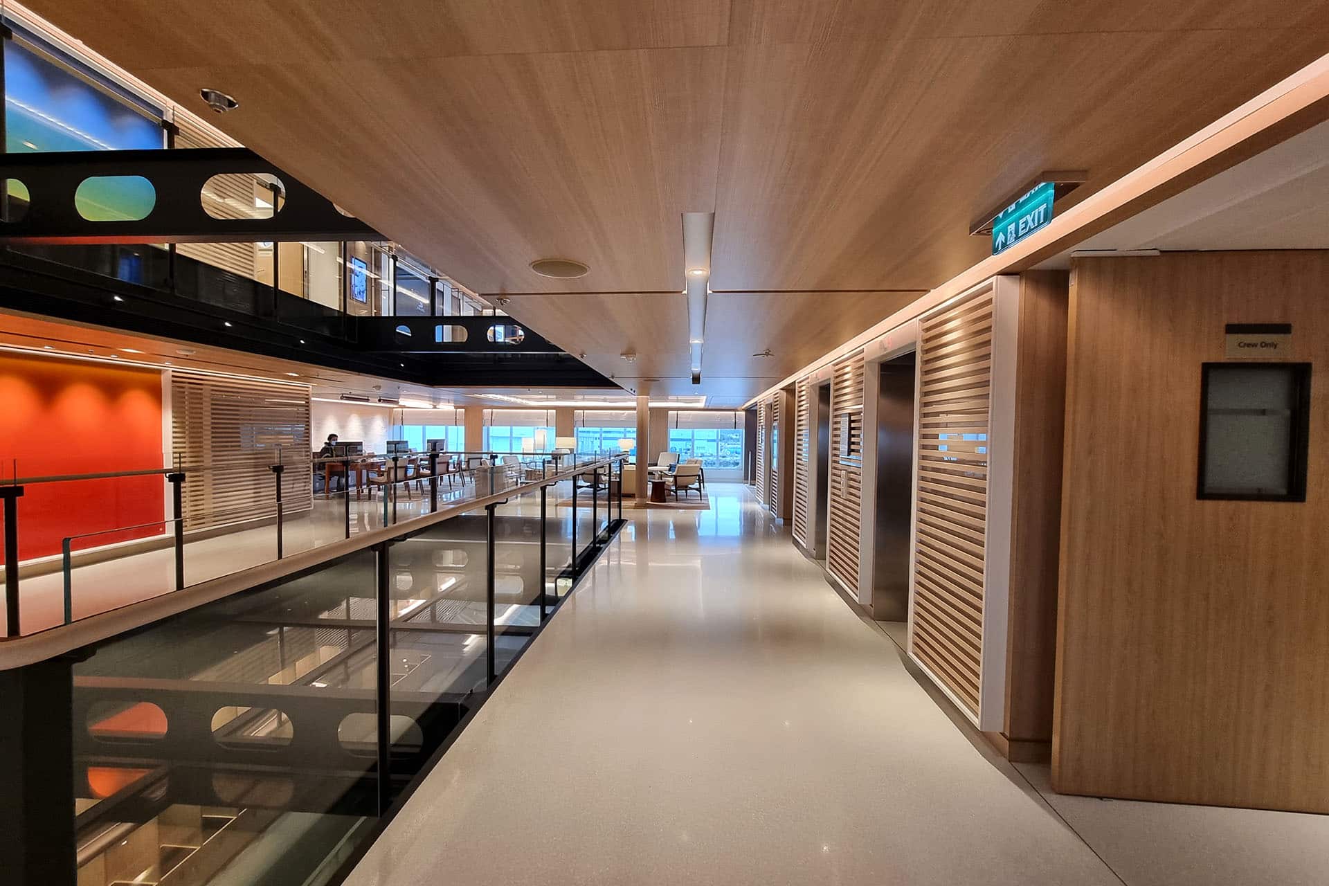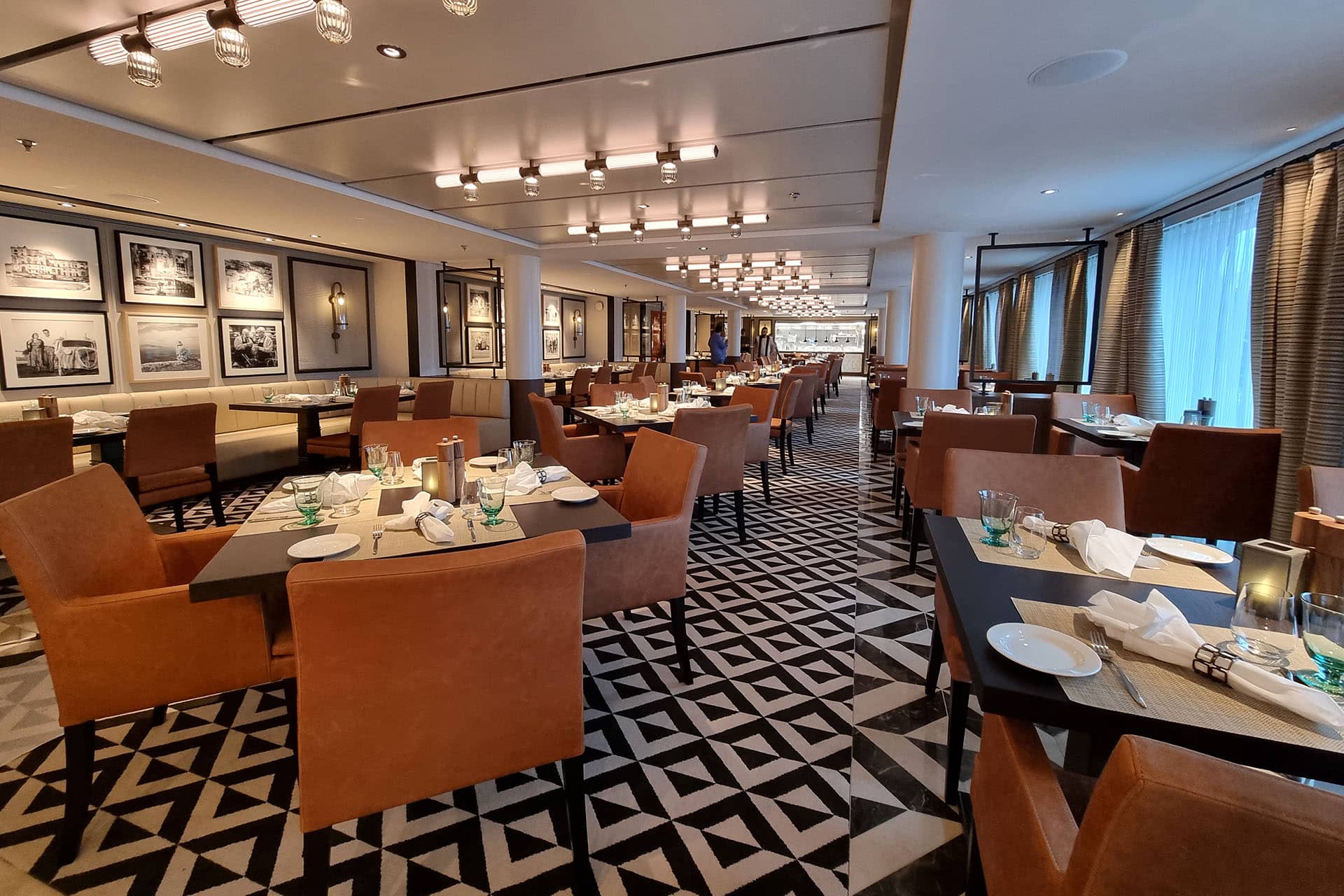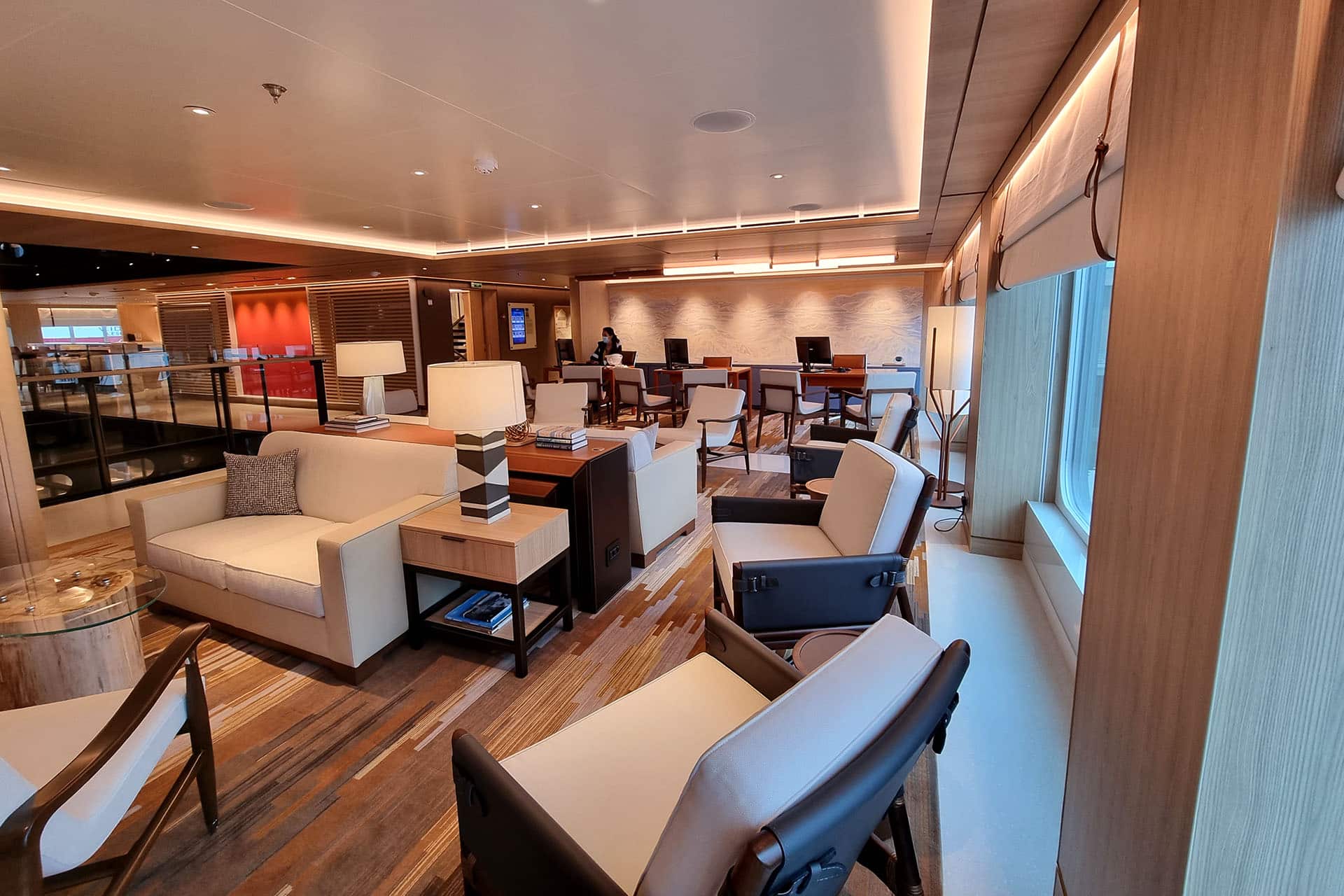 La nave è stata progettata dallo stesso team di architetti e ingegneri della flotta oceanica Viking, rispettando il classico design scandinavo, con ambienti intimi e tanta cura nei dettagli. Proprio quella che noi di Naval Interior, grazie alle nostre evolute tecnologie costruttive unite al sapere artigiano, abbiamo applicato con passione per realizzarne i principali ambienti. Sono nostri alcuni ambienti di ingresso (Tender Embarkation, Entrace Hall ed Expedition Central, i ristoranti (come (The Restaurant, Private Dning e Manfredi’s) e il living room, con il Mamsen’s e la Library.